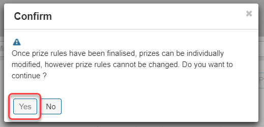 Click the 'Finalise Prize Rules' button once you have allocated all your prizes.