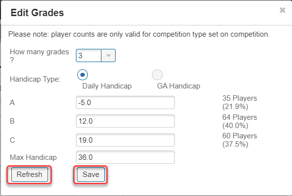 Adjust the starting definitions in each grade and click the 'Save' button and then 'Update' to see the distribution of players in each grade.