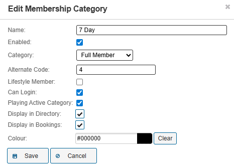 | Playing Active Category | Does this membership category have access to bookings and / or competitions (Yes / No) |