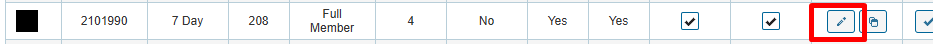To edit the details of a membership category select the PENCIL symbol on the right hand side of the corresponding category row.