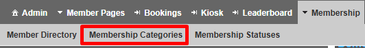 From the top menu, select MEMBERSHIP | MEMBERSHIP CATEGORIES