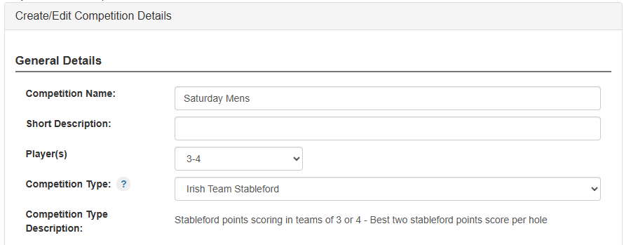 Note that "Competition Type Description" field which explains the calculation of the selected competition format.