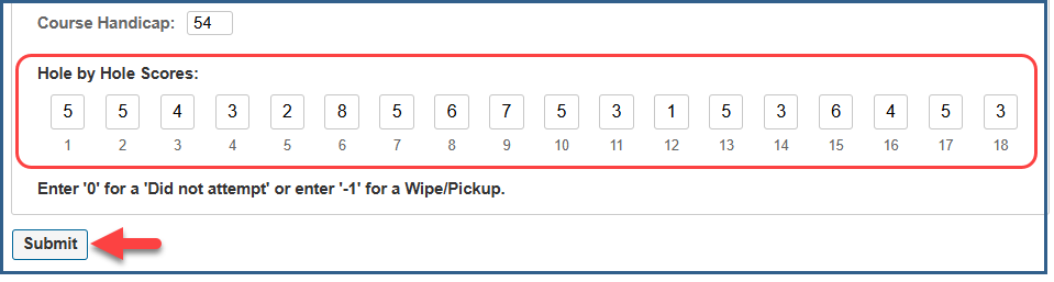 - Enter the players hole by hole score
