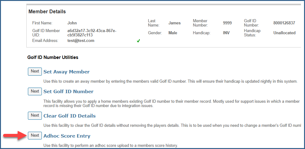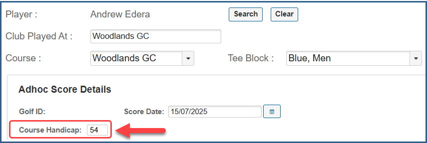 Scores for Initial Handicap Calculation are entered via the AdHoc Score Entry method: