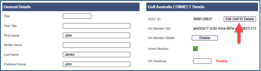 - Edit Golf ID details