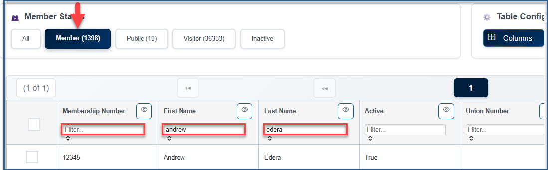 - Find the Members Profile by entering their Member Number, First and or Last Name